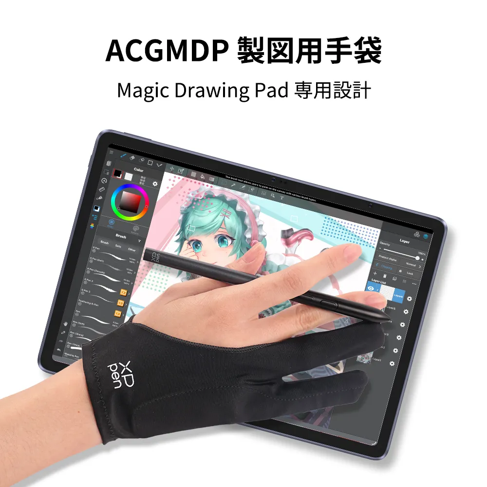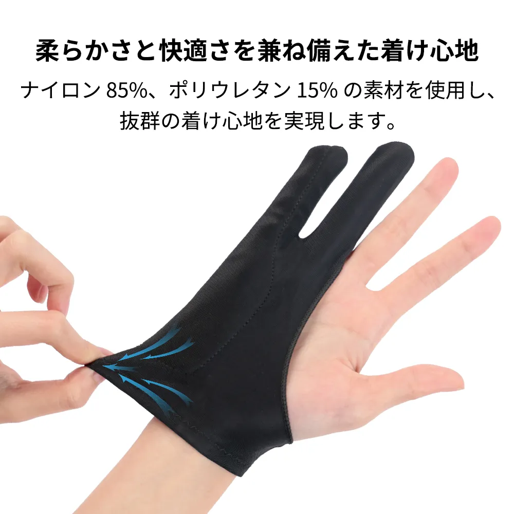 イラスト制作やゲームプレイに最適な、誤動作を防ぐ2本指仕様のタブレットグローブです。二重構造のさらっとした生地が汗や摩擦を抑え、長時間の作業でも快適な描き心地を実現。フリーサイズで左右兼用のため、性別を問わず幅広いユーザーに対応します。液タブやタブ画面を傷から守りながら、スムーズな操作をサポートします。