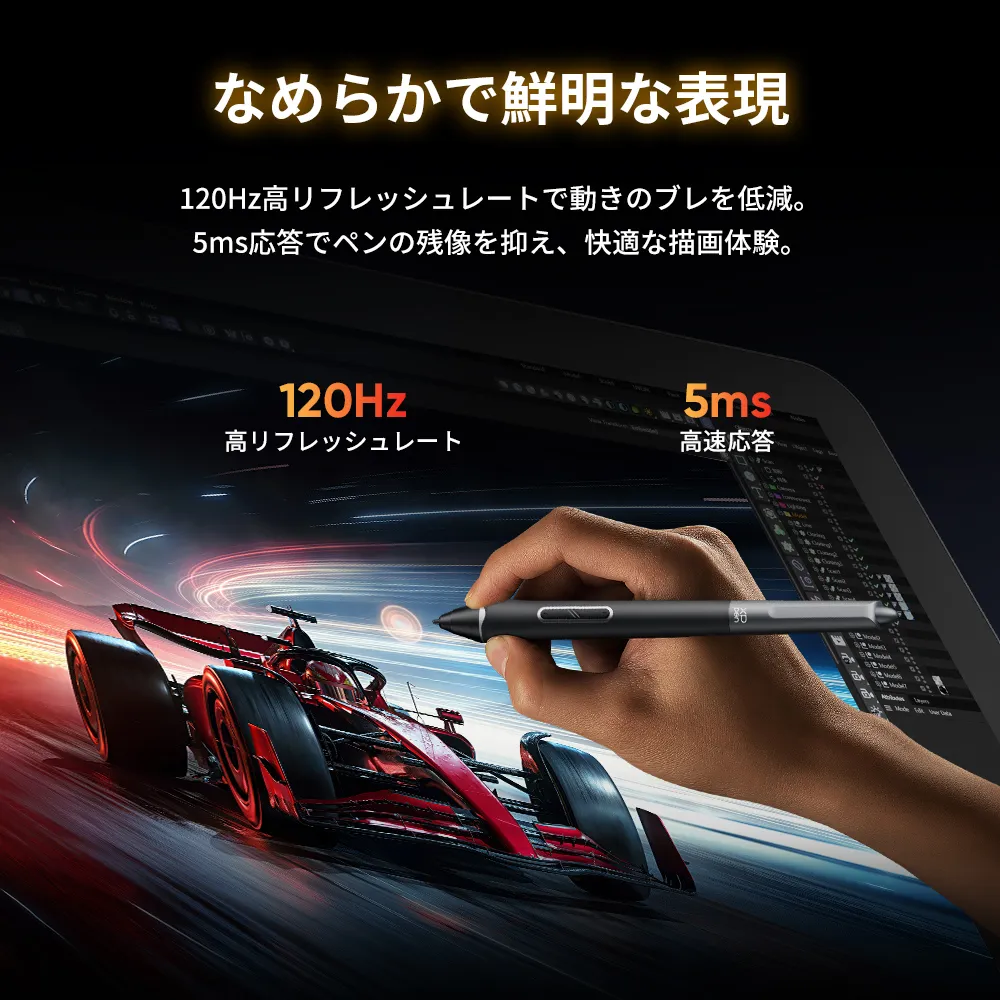 5ms の高速応答によりペンの追従性も向上し、直感的でストレスのない描画を可能にします。