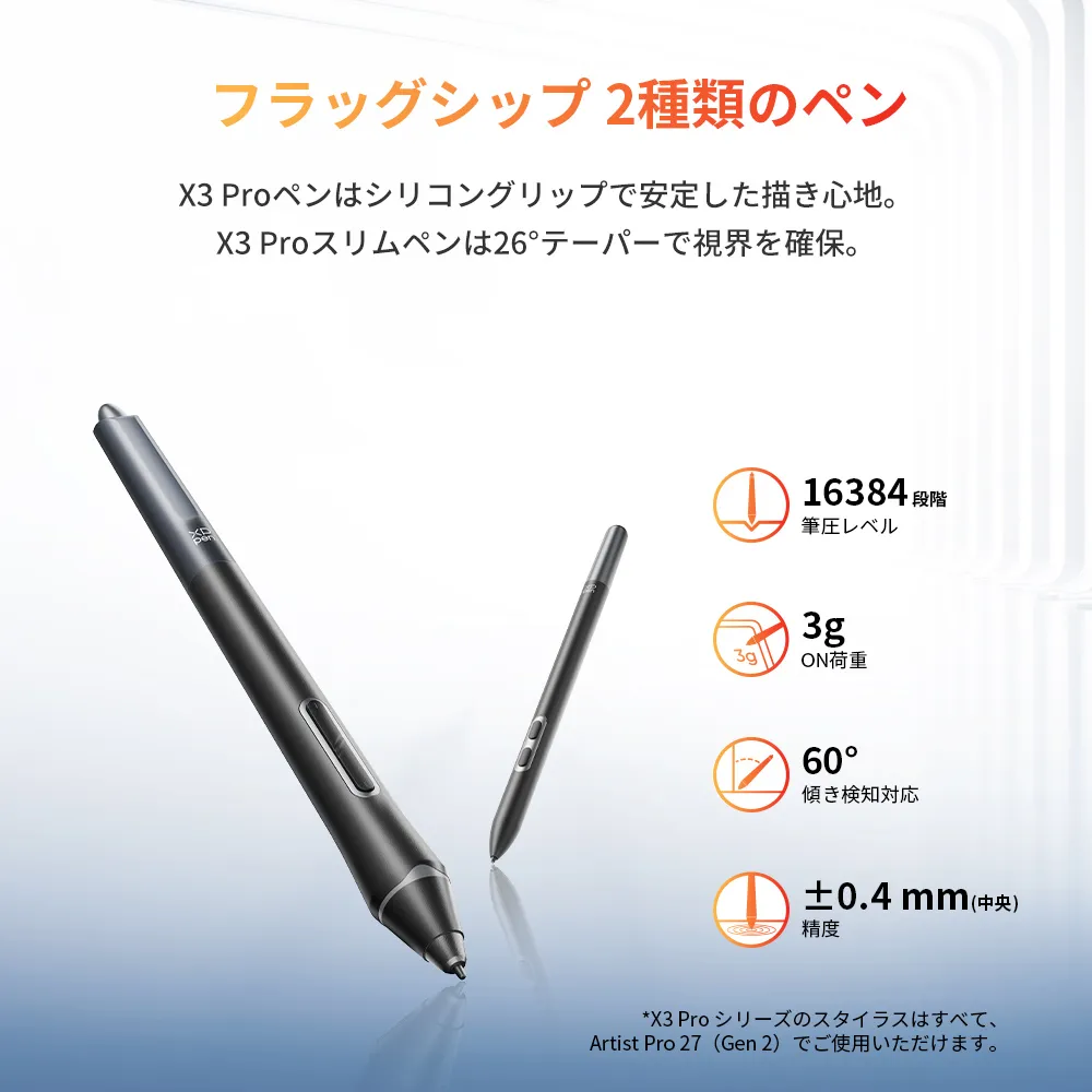 ※X3 Pro シリーズのスタイラスはすべて Artist Pro 27(Gen 2)に対応しています。