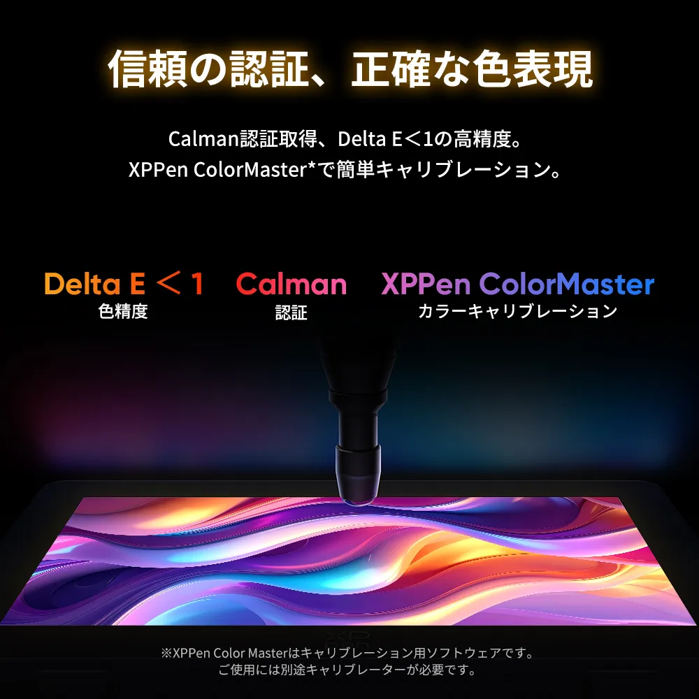 Calman Verified 認証がプロフェッショナル品質を保証し、XPPen ColorMaster*を使用することで、色温度や色空間を細かく調整し、常に安定した色再現を実現します。