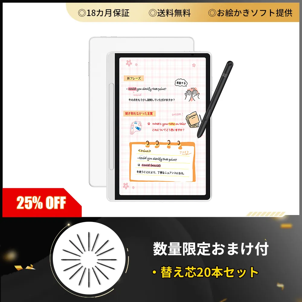 新しいソフトなペン先を手に入れました。水性ペンのような描き心地でディスプレイの表面によくフィットし、紙に書いているような書き心地を実現します。